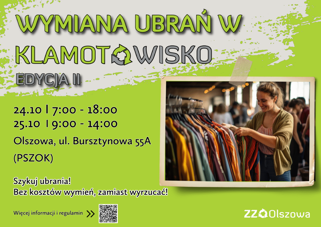 Jeśli tak, to przyjedź w dniach 24–25 października do Klamotowiska i wymień niezniszczone ubrania na inne! Co ważne, akcja jest całkowicie bezpłatna!